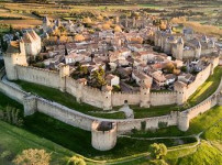 카르카손, 프랑스 드넓은 전원의 모습을 두루 볼 수 있는 이 언덕 꼭대기는 그 전략적 특성이 높게 평가되어... 그 위에 하나의 요새 도시가..